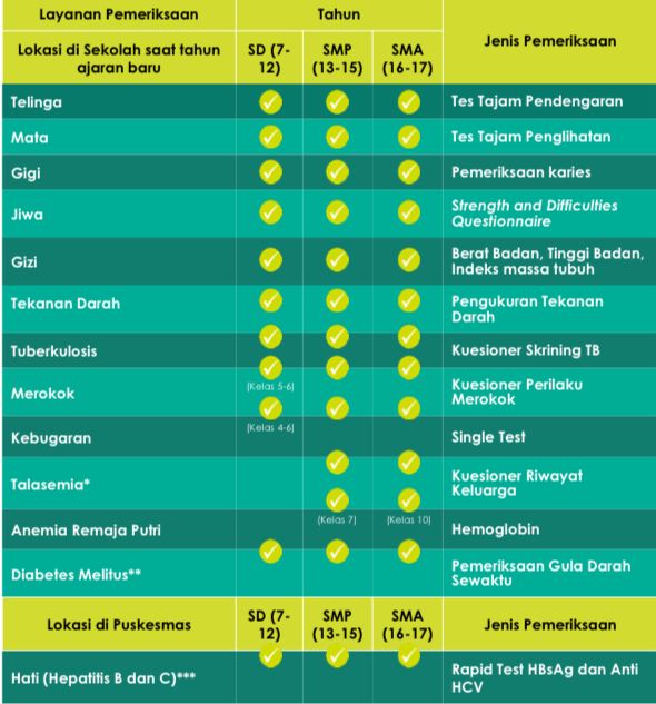 Berdasarkan Keputusan Menteri Kesehatan NOMOR HK.01.07/MENKES/770/2025 tentang Petunjuk Teknis Cek Kesehatan Gratis Sekolah bahwa dalam rangka percepatan pembangunan kesehatan diperlukan langkah strategis, salah satunya dengan program hasil terbaik cepat termasuk Pemeriksaan kesehatan gratis atau disebut juga dengan cek kesehatan gratis.